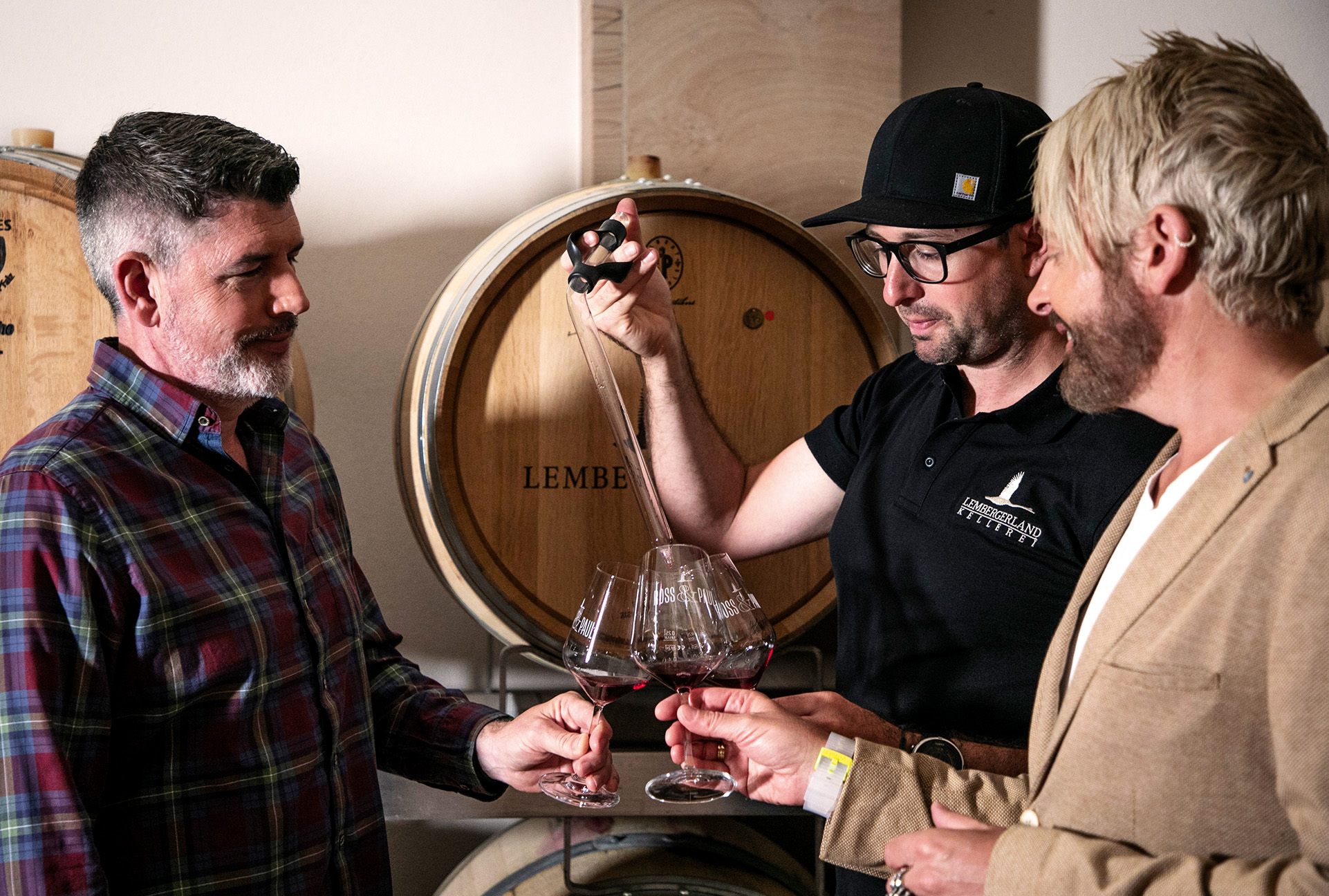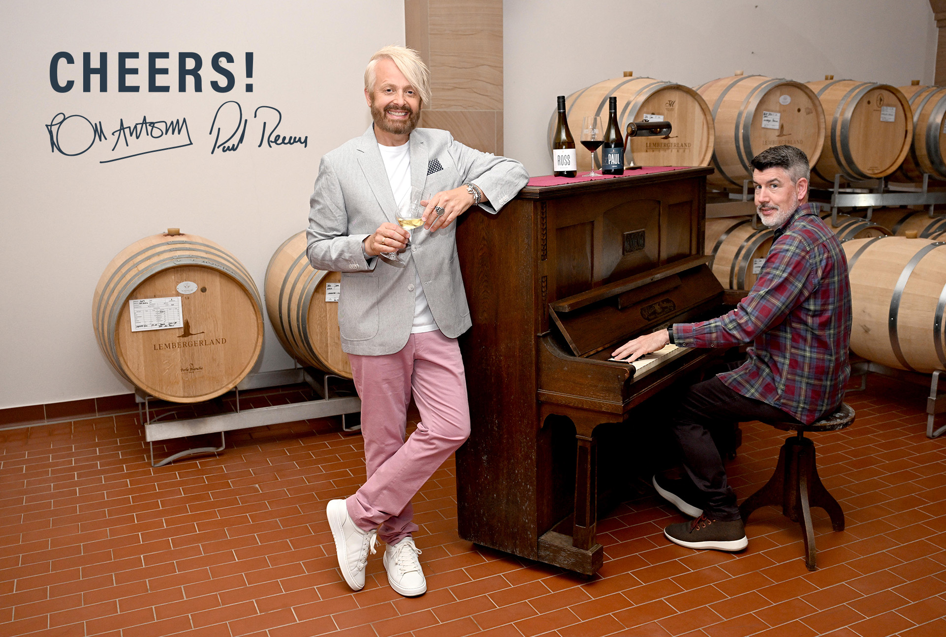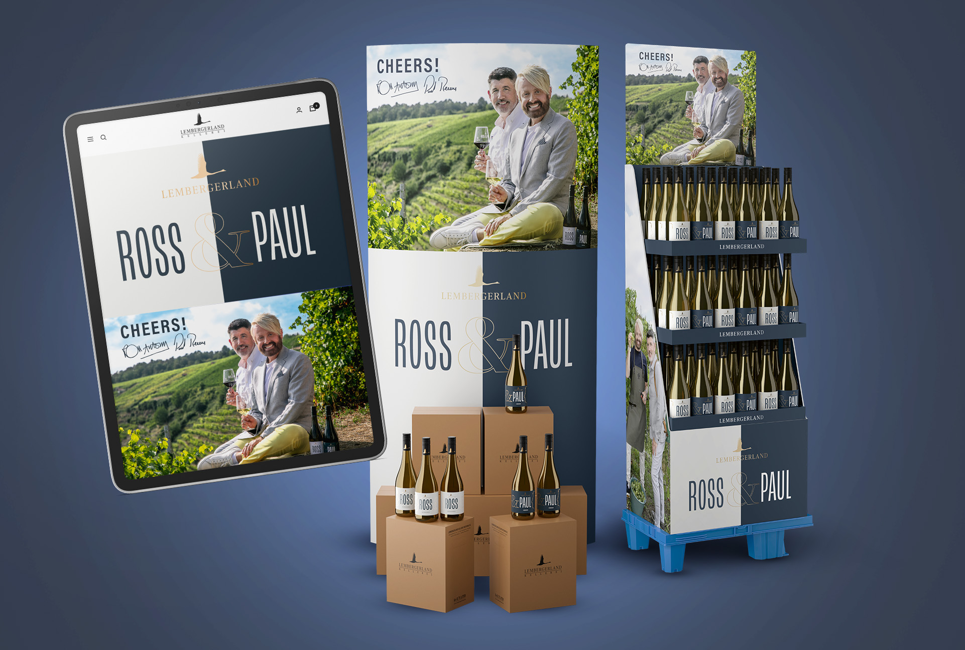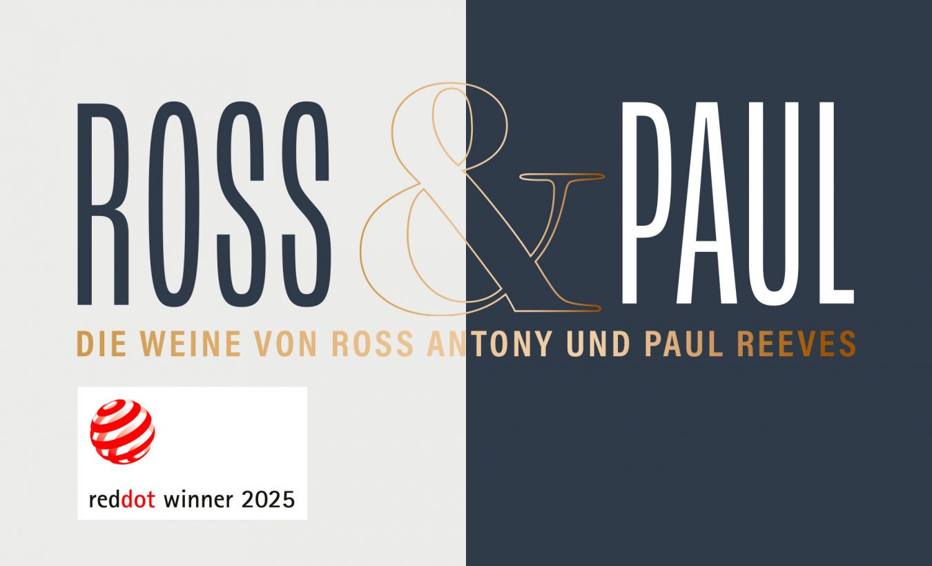 Einen der beiden Red Dot Awards haben wir für die Weinedition „Ross & Paul“ erhalten, die als Joint Venture der Württemberger Winzergenossenschaft Lembergerland mit dem Schlagersänger Ross Antony und seinem Mann, dem Opernsänger Paul Reeves entstanden ist.