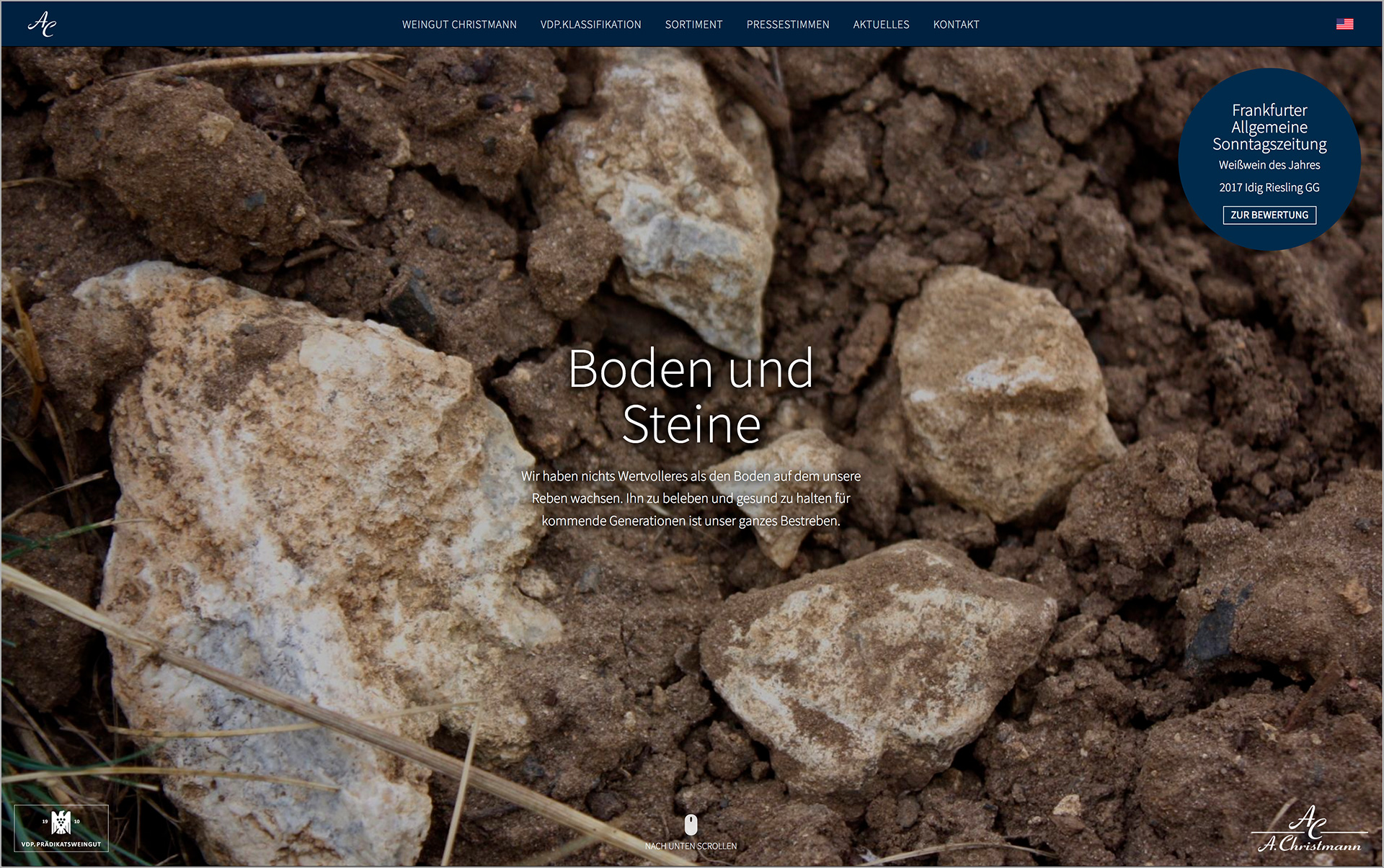 Das Schöne an unserer Arbeit ist, dass wir es mitunter mit Menschen zu tun haben, von denen wir schon lange vor der Zusammenarbeit Fans waren. Steffen Christmann zählt ohne Zweifel dazu. Der Pfälzer Ausnahmewinzer und VDP-Präsident war schon immer ein gern gesehener Gast an unserem Tisch, zumindest im Glas. Seine Weine hatten uns schon lange in den Bann gezogen. Umso größer war die Freude, als er uns fragte, ob wir seine Website neu konzipieren und gestalten könnten. Zugesagt, getan und Freude zurückgegeben. So sehen Gute-Laune-Jobs aus.